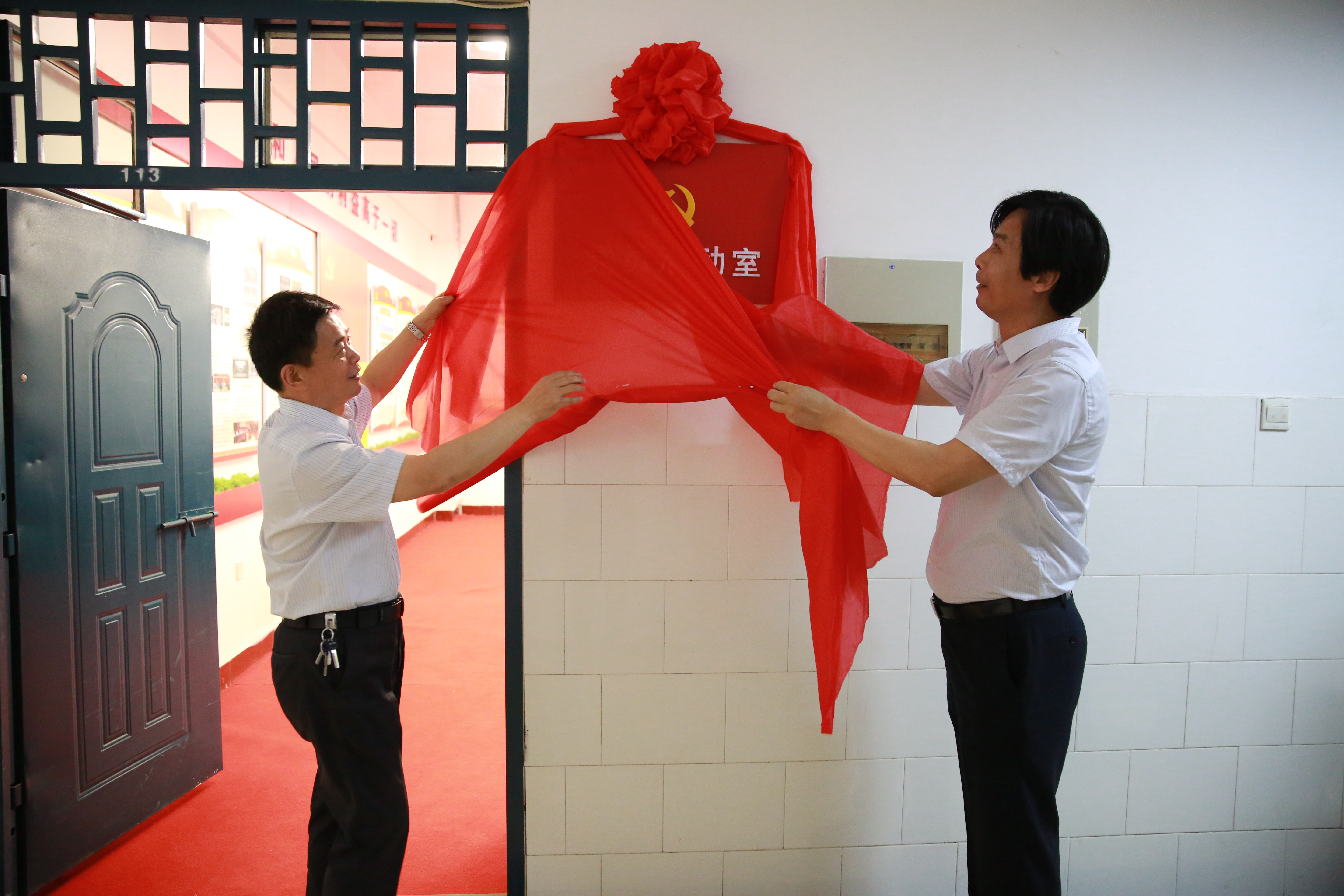 校党委书记任中普、副书记吴建军为数理学院党员活动室揭牌