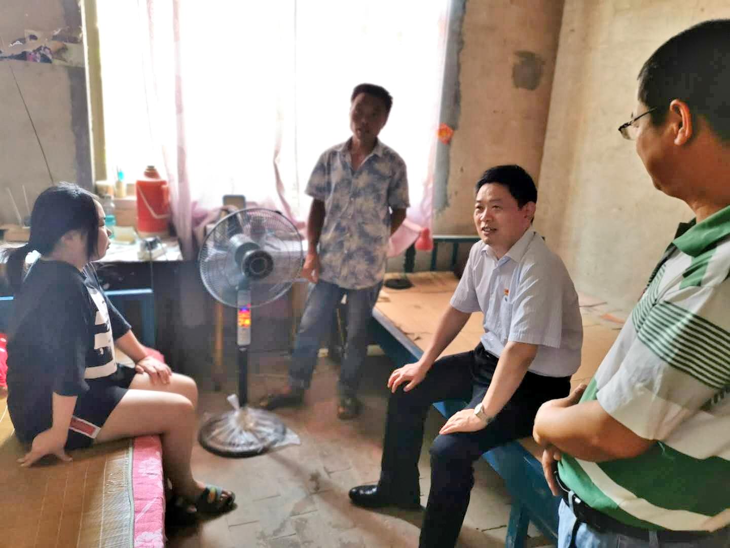 在刘闵城村,任中普书记一行首先来到贫困户刘青印家中,看望了刘青印的女儿刘宁(骨瘤癌患者),详细地询问刘宁病情及治疗情况,鼓励刘宁及其家人要有战胜病魔的信心,保持乐观心态,积极治疗,争取早日康复,并嘱咐我校驻村工作队,要对刘青印一家多关注、多关心、多帮助,切实解决刘青印一家人的实际困难。