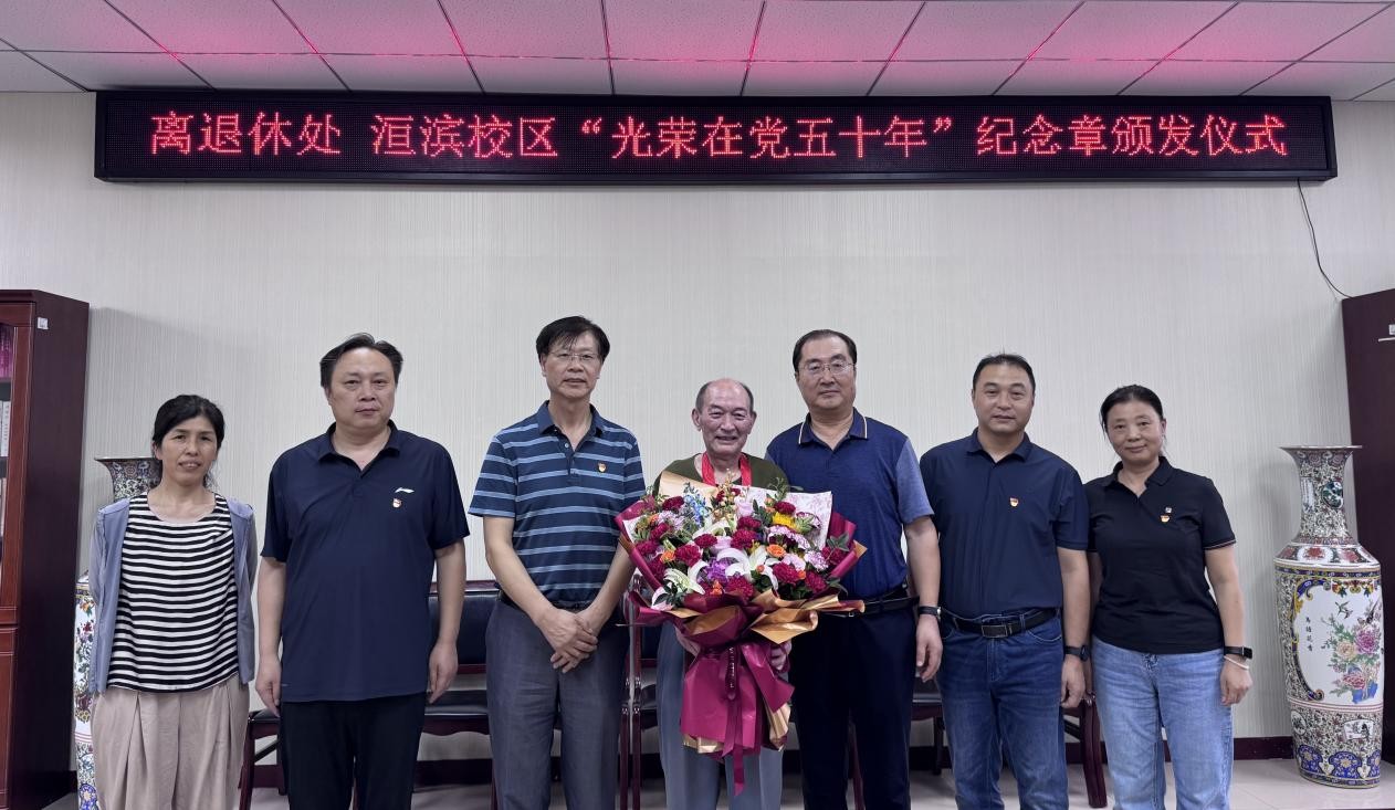 7月1日下午,我校举行“光荣在党50年”纪念章颁发仪式,校党委副书记牛瑞庆出席仪式并讲话。党委极品尤物一区二区三区小说、离退休职工工作处、洹滨校区部门负责人参加活动。