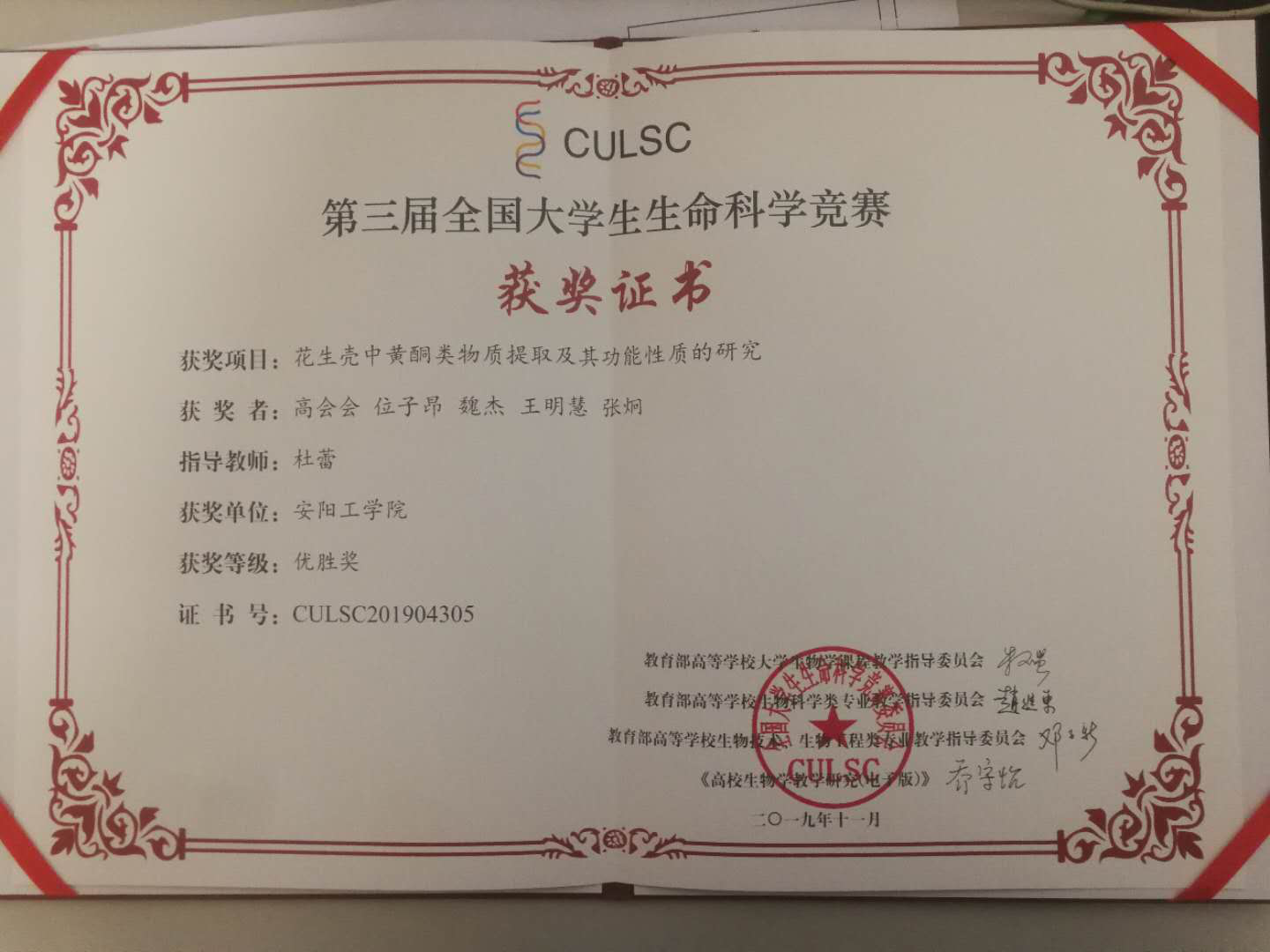 支部党员教师杜蕾指导学生荣获第三届全国大学生生命科学竞赛优胜奖