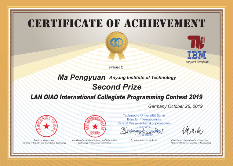 支部党员孙高飞指导学生马鹏远获得蓝桥杯国际赛二等奖